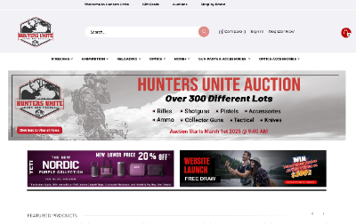 Hunters Unite is a comprehensive online store for hunting enthusiasts, offering everything from ammunition and scopes to high-performance firearms and gear. Their site delivers seamless browsing, secure checkout, and excellent product categorization.